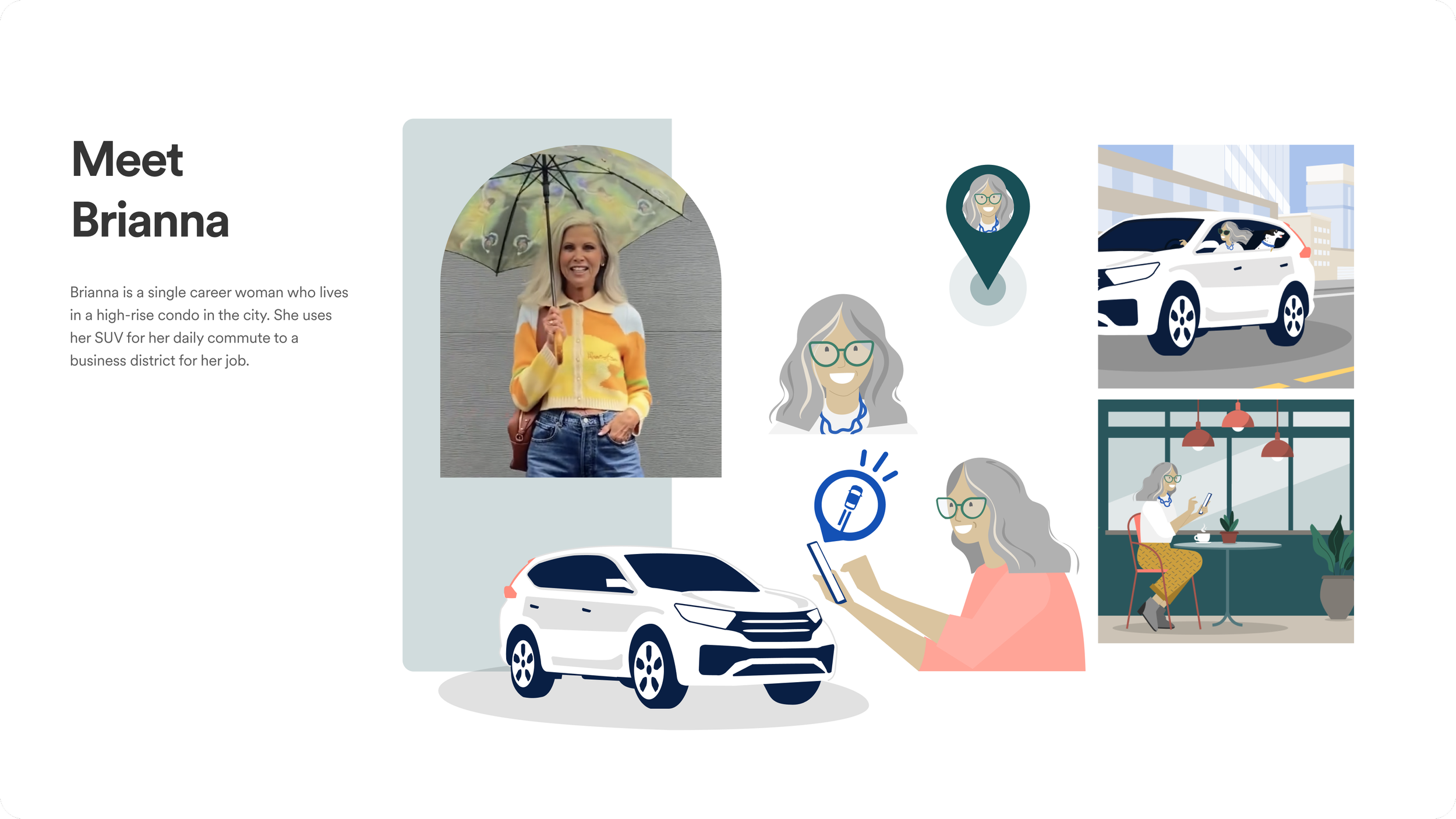 RResult: The illustrated personas were instrumental in guiding the visual storytelling approach across Lithia's digital platforms. They provided a tangible reference that improved our design team's ability to create illustrations that were not only aesthetically pleasing but also meaningful and effective in communicating with users. This project led to a measurable increase in user engagement, with customers reporting a more personalized and relatable experience when interacting with Lithia's brand, ultimately contributing to increased trust and satisfaction.