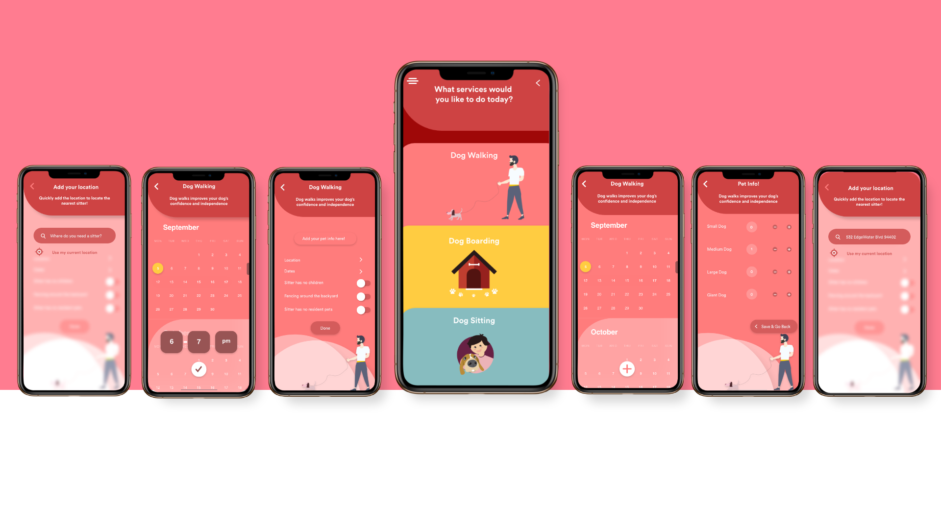 Includes - Login Screen ; Staff Login ; Request Ride Page ; Hamburger Menu Bar ; Ride History Page ; Dial-pad; Pick-up and drop-off location page